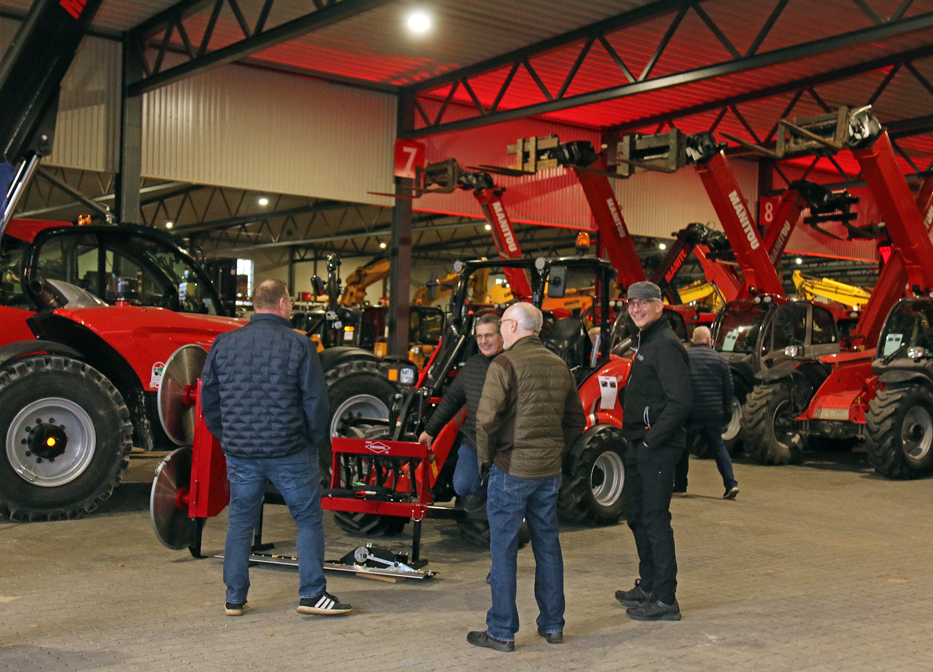 Blandt de andre, der bestilte nyt maskineri på ScanMek, var firmaet Jeroso fra Lunderskov ved for Kolding. Kim Roed kom sammen med sønnen Kasper Roed og montør Morten Lassen for at tage en Manitou MT1840 teleskoplæsser i øjesyn og sikre, at den fremover kommer til at køre for på opgaver landet rundt.