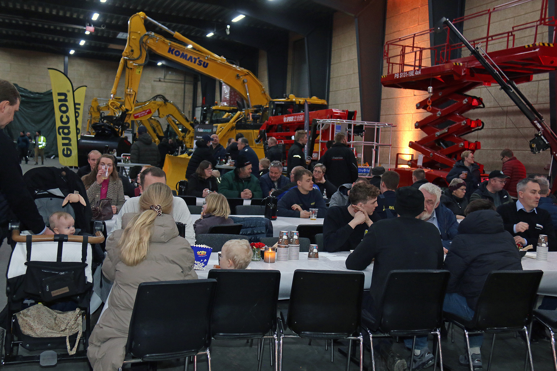 Menukortet lokkede med den klassiske entreprenørret ”Stegte med brød”, men også med bøf stroganoff, små burgere, laksesalat og andre lækkerier ad libitum. Samt ikke mindst Manitou, Komatsu, Weycor, Sennebogen og lifte fra Platform Basket og PB Platforms fra maskinkataloget. Scenen var sat til et brag af et åbent hus-arrangement. Og dét blev den 15. udgave af Scantrucks egen maskinmesse, ScanMek 2025.