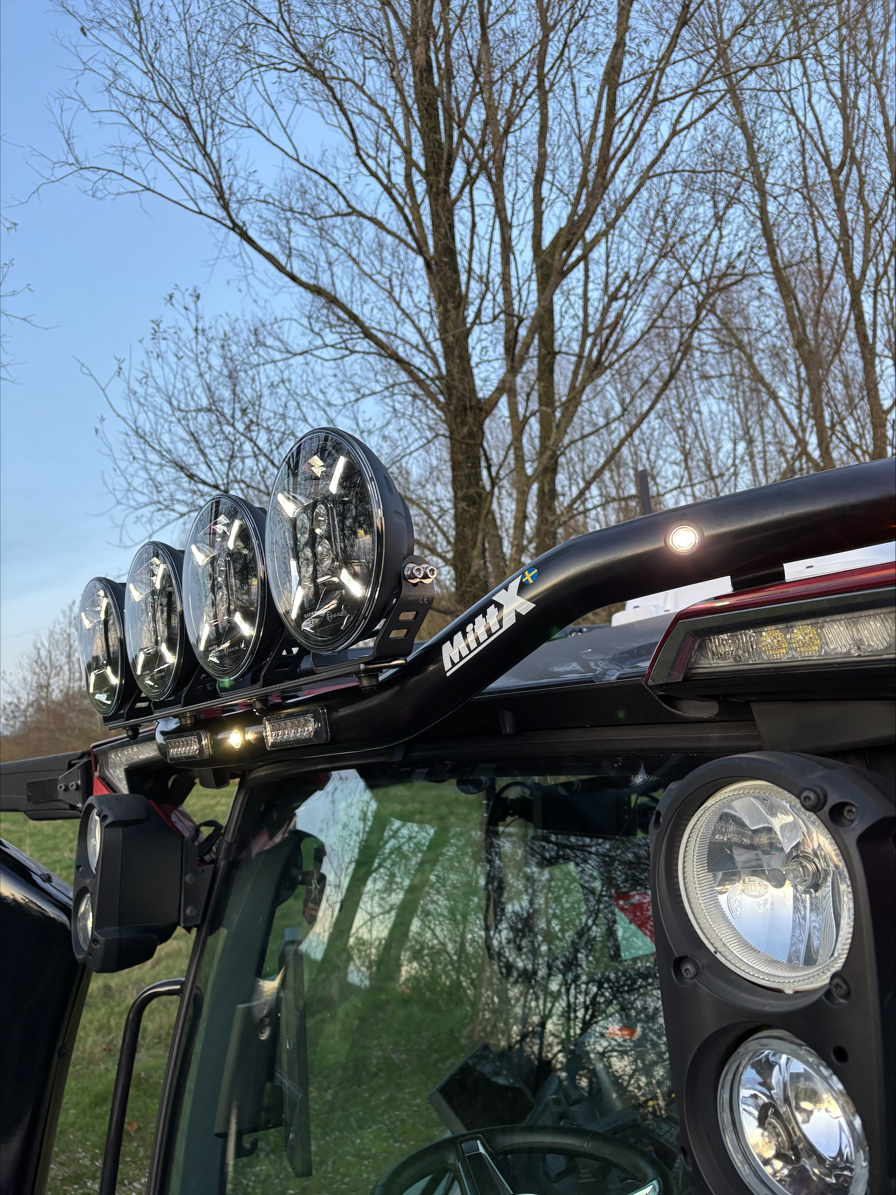 Sammen med den nye Valtra købte de også en større vogn fra Krampe og nyt vinterudstyr, blandt andet en helt ny saltspreder, så traktoren er klar til sne og frost. Belysningen fik også en opgradering. Ligesom på virksomhedens gravemaskiner skulle traktoren have ekstra lys, og her valgte de lygter fra den svenske producent MittX, som leverer kraftig og pålidelig arbejdsbelysning.
